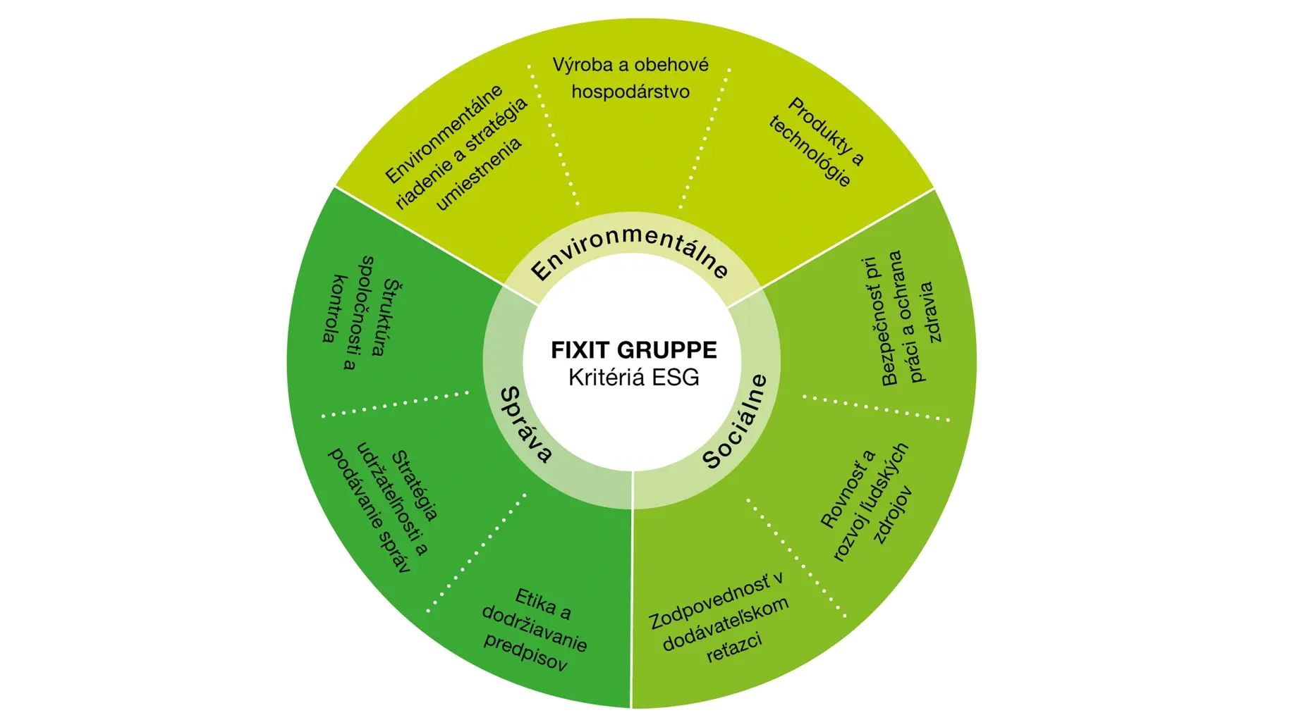 Udržateľnosť v zmysle sociálnej zodpovednosti podnikov (CSR) je ústrednou témou súčasnosti. FIXIT GROUP prijíma túto zásadnú výzvu a preberá na seba spoločenskú zodpovednosť. Spolu so spoločnosťami značiek FIXIT, GREUTOL, HASIT, KREISEL a RÖFIX dôsledne prispôsobujeme naše stratégie a opatrenia. Pritom sa riadime usmerneniami iniciatívy OSN Global Compact s jej 10 základnými princípmi a konáme v súlade s celosvetovo uznávanými kritériami ESG.